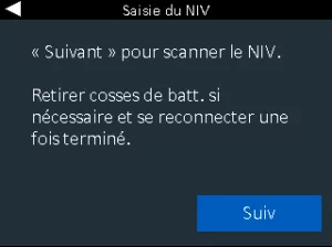 3.)Saisie du NIV– Balayez le NIV du véhicule à l’aide du lecteur de codes-barres intégré ou saisissez manuellement le numéro d’identification au moyen du clavier.